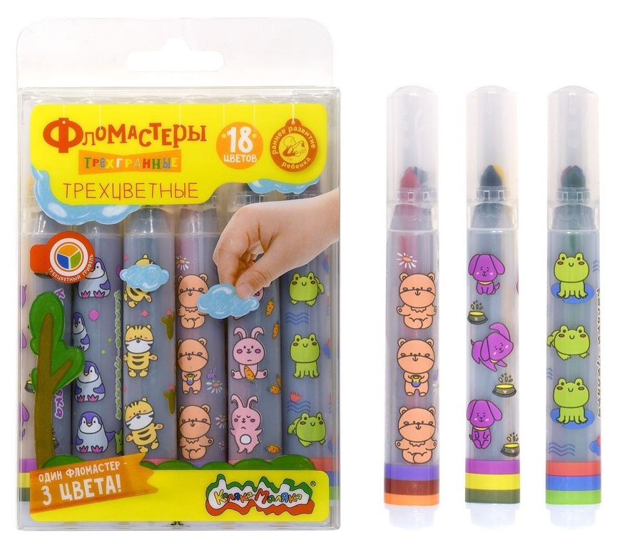 Фломастеры Каляка-Маляка® одни из самых ярких, долговечных и безопасных фломастеров на рынке. Разработаны для детей в возрасте от 3 лет. Утолщенный корпус удобен для детской ручки. Трехцветный грифель поможет создать самый необычный шедевр. Фломастеры Каляка-Маляка® соответствуют самым высоким мировым стандартам качества и безопасности! Обладают яркими, сочными цветами. Богатая палитра оттенков. Полипропиленовый корпус обладает повышенной устойчивостью к излому, не образует острых краев при повреждении. Безопасный вентилируемый колпачок обеспечит свободное прохождение воздуха при случайном попадании в дыхательные пути. Прочный пишущий узел не деформируется и не продавливается. Чернила на водной основе.