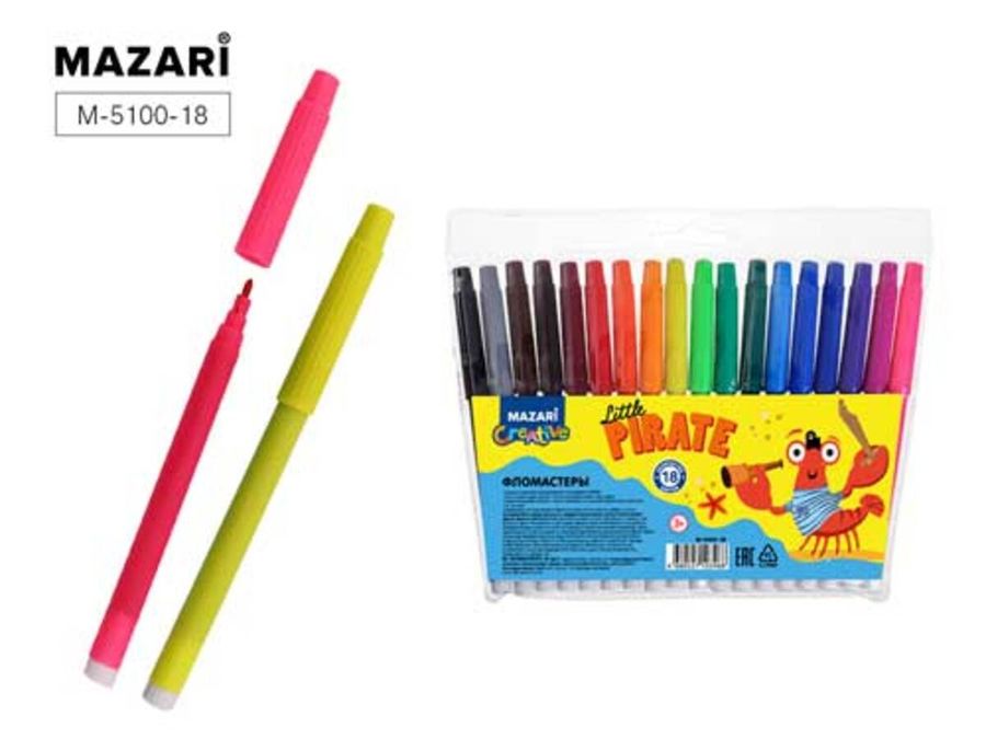 Фломастеры — это друзья детства каждого ребенка! Они не только помогают развитию мелкой моторики, но и способствуют выражению своих эмоций через рисунок! Яркие насыщенные цвета и качество — всё, что нужно для красивого рисунка и хорошего настроения! Фломастеры представлены в наборе из 18 цветов с невентилируемым колпачком. Продаются в блистере с европодвесом.