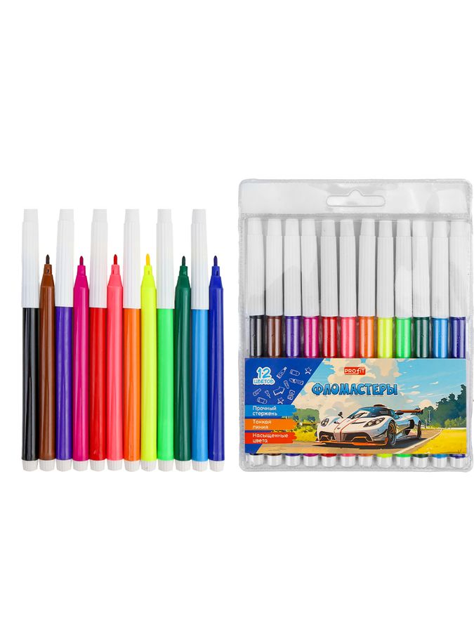 Фломастеры 12цв круглые конусовид. невент. колпачок блистер Авто PROFIT ФЛ-2550