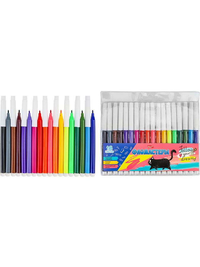 Фломастеры — это друзья детства каждого ребенка! Они не только помогают развитию мелкой моторики, но и способствуют выражению своих эмоций через рисунок! Яркие насыщенные цвета и качество — всё, что нужно для красивого рисунка и хорошего настроения! Фломастеры от компании "Проф-Пресс" представлены в наборе из 18 цветов с невентилируемым колпачком. Продаются в блистере с европодвесом.