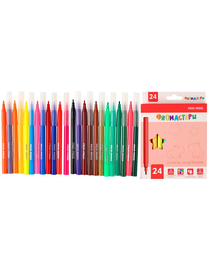 Фломастеры 24цв круглые конусовид. вент. колпачок к/к Капибара PROF-PRESS ФЛ-4899