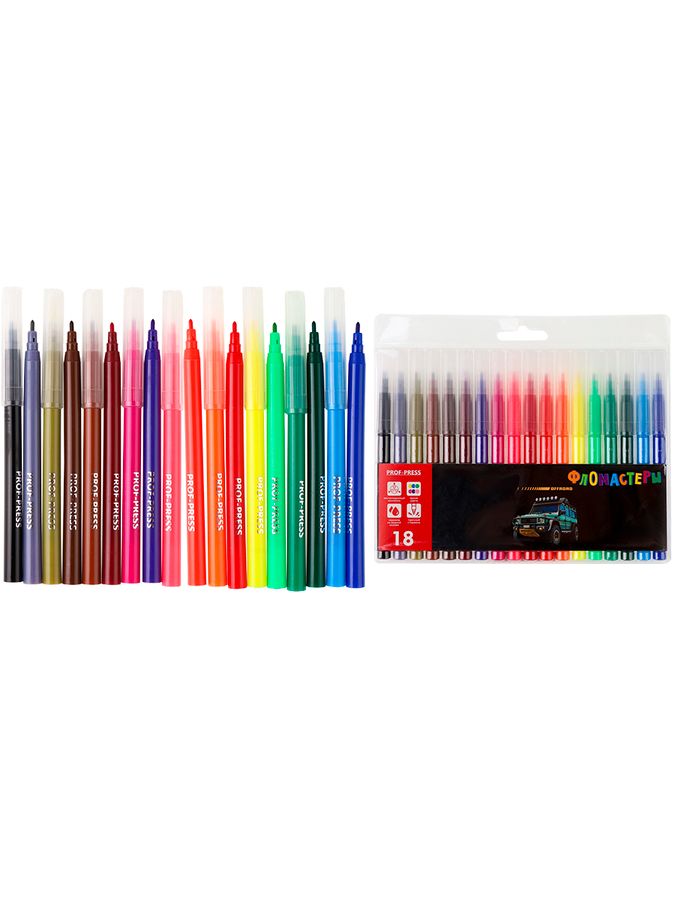 Фломастеры 18цв круглые конусовид. вент. колпачок блистер Внедорожник PROF-PRESS ФЛ-4888