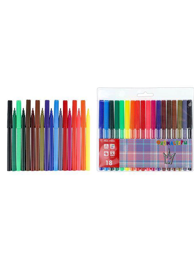 Фломастеры 18цв круглые конусовид. вент. колпачок блистер Корона PROF-PRESS ФВ-2560