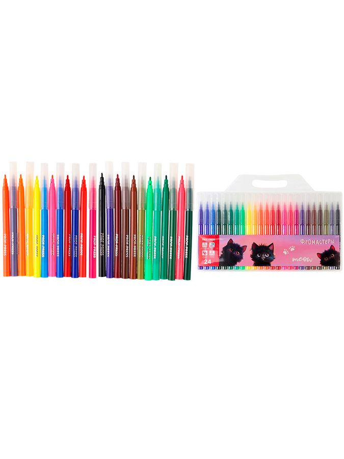 Фломастеры 24цв круглые конусовид. вент. колпачок блистер Черный котик PROF-PRESS ФЛ-4891