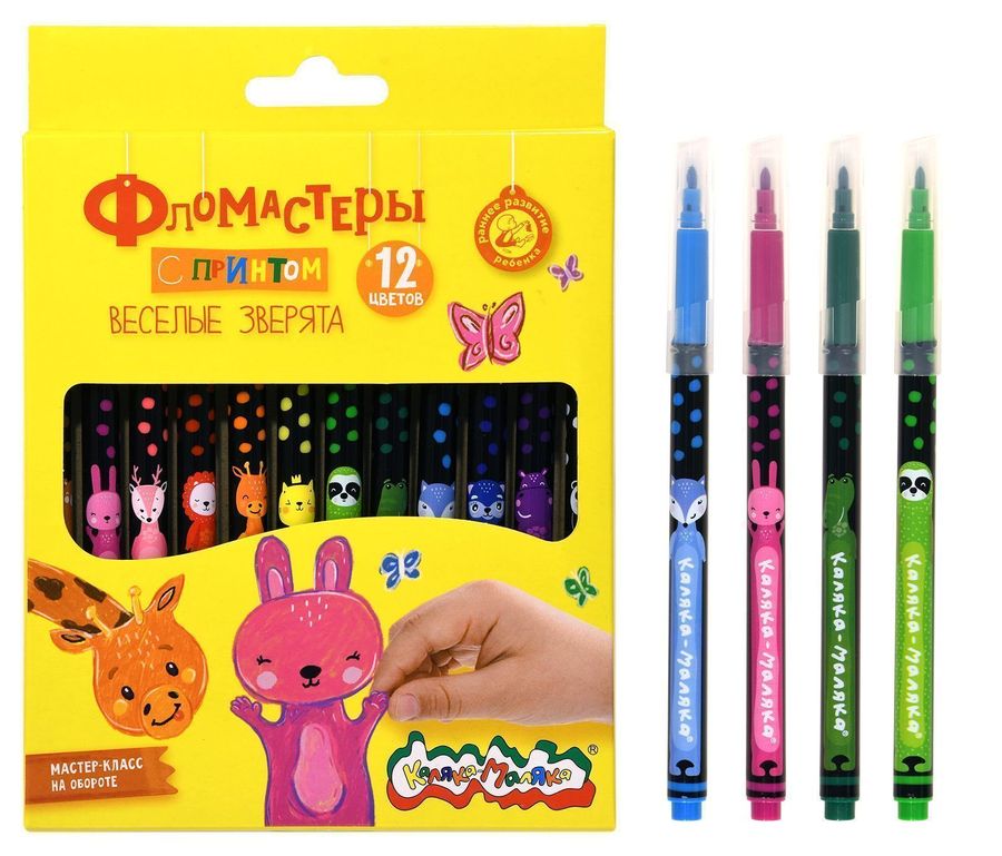 Фломастеры Каляка-Маляка® одни из самых ярких, долговечных и безопасных фломастеров на рынке. Разработаны для детей в возрасте от 3 лет. Весёлые зверята на корпусе привлекут внимание ребенка и несомненно помогут увлечь его в мир творчества! Фломастеры Каляка-Маляка® соответствуют самым высоким мировым стандартам качества и безопасности! Полипропиленовый корпус обладает повышенной устойчивостью к излому, не образует острых краев при повреждении. Безопасный вентилируемый колпачок обеспечит свободное прохождение воздуха при случайном попадании в дыхательные пути. Прочный пишущий узел не деформируется и не продавливается. Чернила на водной основе. Свежие следы фломастеров легко отстирываются с большинства тканей и смываются с кожи ребёнка!