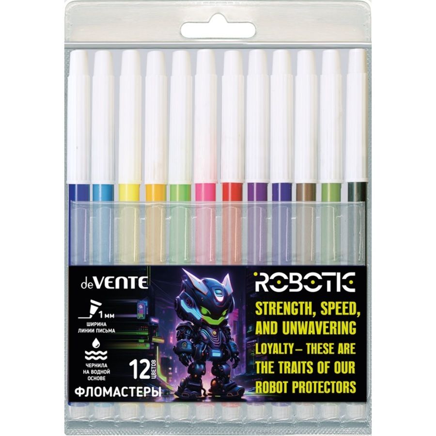 Фломастеры "deVENTE. Robotic" 12 цветов с невентилируемым колпачком, в пластиковом блистере