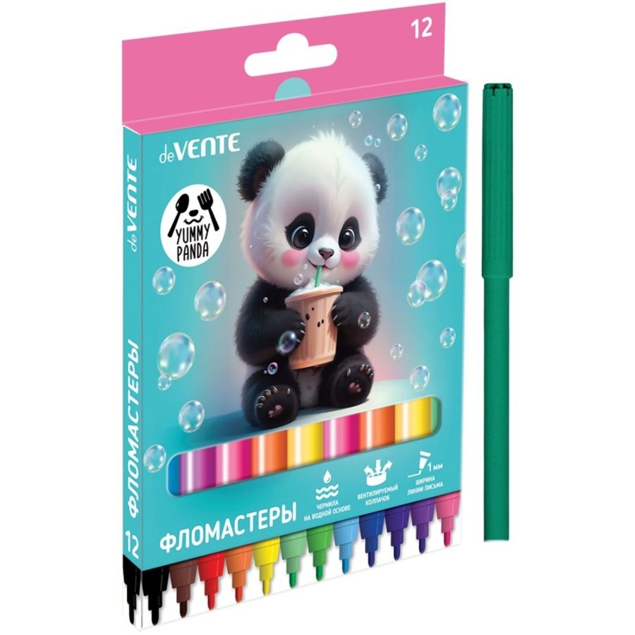 Фломастеры "deVENTE. Yummy Panda" 12 цветов с вентилируемым колпачком, в картонной коробке с подвесом