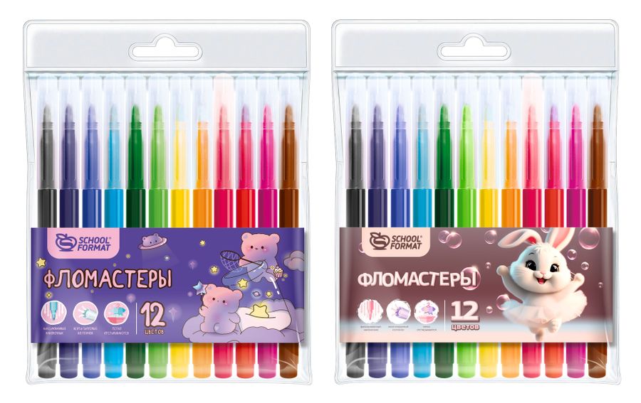 Фломастеры Schoolformat® имеют прочный фибровый наконечник и яркие чернила передающие все самые сочные цвета. Корпус фломастеров изготовлен из качественного полипропилена, повышенная прочность которого, позволяет избежать случайной поломки. Одной из наиболее важных характеристик является не продавливающийся кончик стержня толщиной 2 мм. Все фломастеры имеют вентилируемый колпачок. Удобная упаковка – пластиковый блистер – прочная и долговечная. В ней видны все фломастеры, ни один не потеряется!