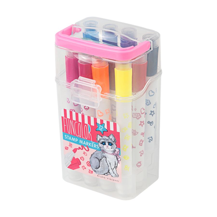 Укороченные фломастеры - штампики "FunColor" ТМ Bruno Visconti специально созданы для маленьких детей. Их удобно держать в руке, а утолщенный наконечник диаметром 4 мм из высококачественного синтетического волокна выдержит любой, даже самый сильный нажим начинающего художника. Корпус из полипропилена, украшенный принтом с очаровательным енотом, имеет повышенную устойчивость к деформации, при поломке не образует острых краев и не поранит ребенка. Фломастеры снабжены безопасными вентилируемыми колпачками. Чернила на водной основе легко смываются с рук и отстирываются с одежды. Отличительной особенностью этого набора является наличие в колпачках маленьких штампиков. С их помощью можно мгновенно и без труда нарисовать целую стаю рыбок, зеленеющий лес и цветущий луг или усыпать небо звездочками. Фломастеры отвечают всем требованиям безопасности и рекомендованы детям от 3 лет. Упаковка в виде пластикового пенала с защелкивающейся крышкой удобен для хранения и транспортировки.