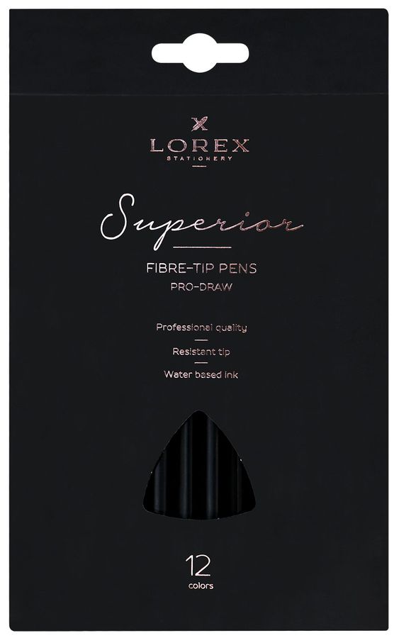 Яркие и непохожие на всех – фломастеры LOREX! Они перевернут классическое представление о фломастерах. Ваш взгляд не сможет оторваться от новой коллекции фломастеров LOREX PRO-DRAW SUPERIOR. Абсолютно черная матовая упаковка с фольгой цвета розового золота – мы готовы удивлять! Упаковка имеет двойной трей, который выдвигается сбоку. Это очень удобно – фломастеры лежат аккуратно, а все цвета видно сразу. У фломастеров нет шанса потеряться. Лаконичный тонкий корпус, удобный захват и тонкий наконечник помогут создавать точные детальные рисунки. Качественные чернила на водной основе безопасны и прослужат долгое время.