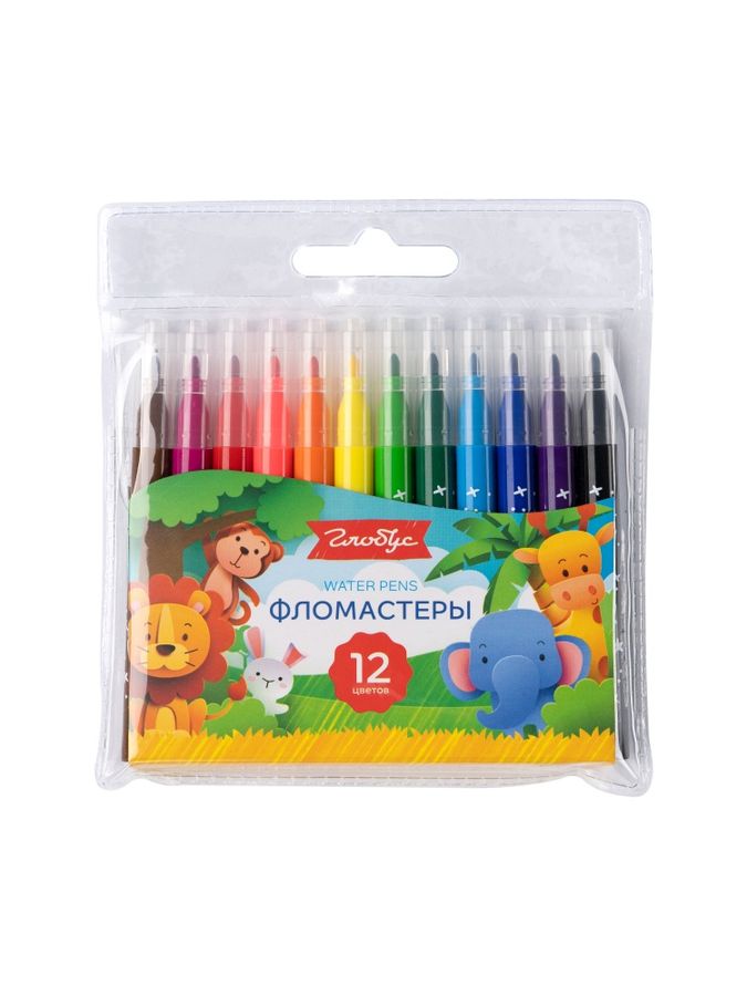 Фломастеры цветные 12 цветов. Предназначены для детей от 3-х лет. Подходят для использования в школе, рисования и творчества. Яркие и насыщенные цвета в количестве 12 штук позволяют создавать удивительные рисунки, развивая воображение и мелкую моторику. Упаковка: ПВХ-конверт с европодвесом.