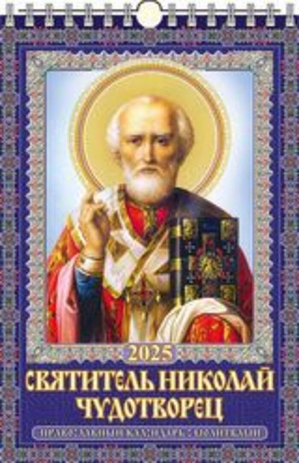 Настенный перекидной календарь на металлическом гребне с ригелем, формат 320х480 мм, в индивидуальной упаковке (европакет с подвесом). Состоит из красочных обложки и подложки на мелованном картоне плотностью 235 г/м2, покрытых глянцевым УФ-лаком, которые скреплены металлическим гребнем с внутренним блоком из шести листов. Листы внутреннего блока - слайд и крупная календарная сетка на каждый месяц с нумерацией недель (кроме сеток православных календарей) на глянцевой мелованной бумаге плотностью 105 г/м2. С молитвами