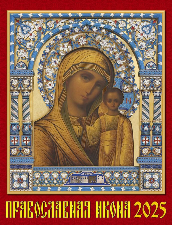 Календарь 2025 1-блочный 460х600мм Гребень+ригель 12л Православная Икона День за Днем 13502