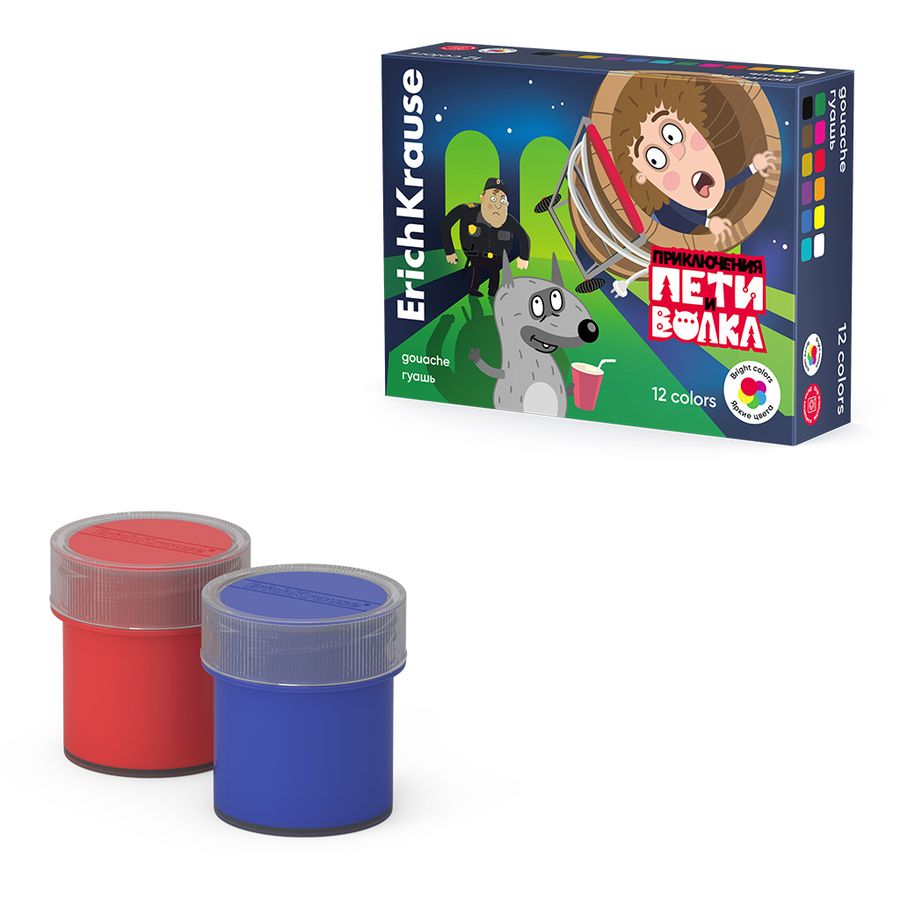 Гуашь 12цв 20мл Приключения Пети и Волка карт.уп. ERICH KRAUSE 61071