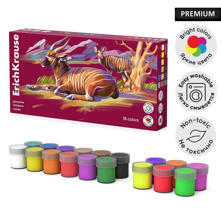 Гуашь ErichKrause с УФ защитой яркости устойчива к воздействию солнечных лучей. Рисунки, выполненные такими красками, дольше сохраняют сочные цвета. Гуашь обладает насыщенными плотными цветами с высокой укрывистостью, ровно ложится на бумагу и быстро высыхает. Безопасная гуашь ErichKrause на водной основе легко смывается с рук и отстирывается с большинства видов ткани и бытовых поверхностей, не токсична.