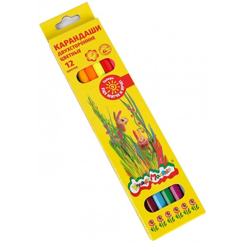 Двусторонние цветные карандаши Каляка-Маляка® экономят место в сумочке ребенка, так как 6 карандашей позволяют рисовать 12 цветами: 6 основных цветов и 6 флуоресцентных. Сочетание основных цветов с флуоресцентными позволяет ребенку воплотить самые яркие и удивительные фантазии.• 6 карандашей – 12 цветов (6 основных цветов и 6 флуоресцентных)• изготовлены из прочной и легкой древесины• имеют идеально отцентрованный мягкий прочный грифель• не крошатся во время заточки, не ломаются, срез остается гладким и блестящим• хорошо заточены• хорошо ложатся на бумагу, оставляя яркий, устойчивый к выцветанию след• покрыты лаком, предотвращающим от рассыхания и трещин на корпусе