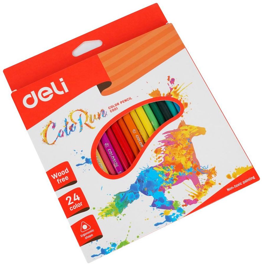 Карандаши цветные 24цв 3-гран. дерево ColoRun карт.уп. DELI EC00320