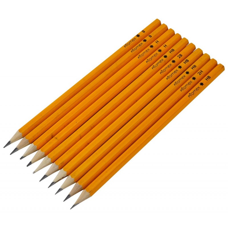 Карандаш чернографитный "Attomex" 10 шт в наб. 2B-2H диаметр грифеля 1,85 мм, гексагональный в пластиковой упаковке, желтый корпус