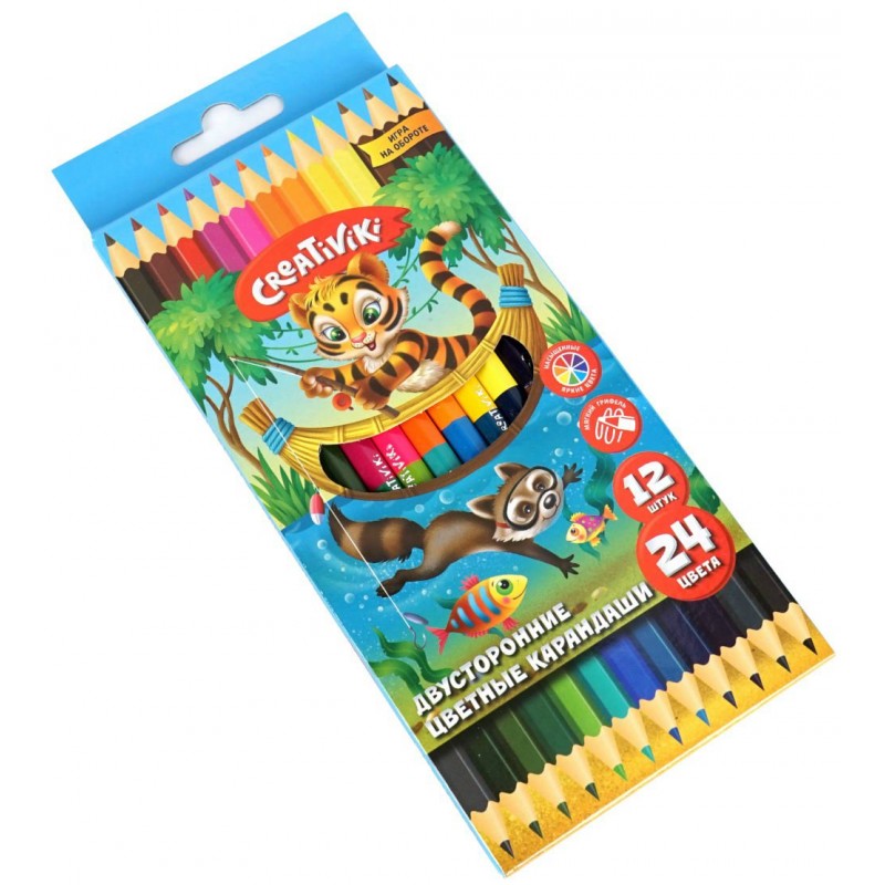 Карандаши цветные двухцвет. 12шт 24 цвета шестигран. Creativiki КЦД12КР (уни)