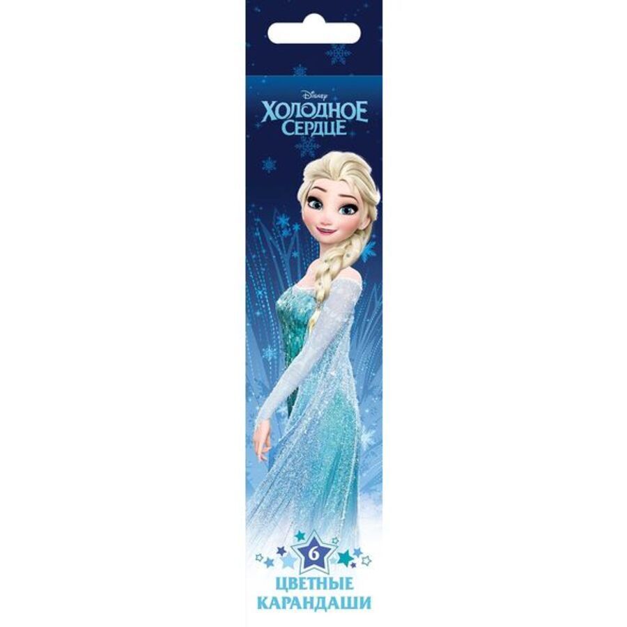 Карандаши цветные Hatber VK 6 цветов с заточкой в картонной коробке с европодвесом Холодное сердце (DISNEY).