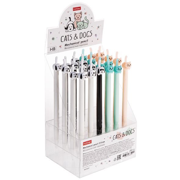Механический карандаш с металлическим клипом для комфортного письма. Дополнен забавным дизайном с фигурками кошки и собаки. Диаметр грифеля: 0,5 мм. Упаковка: 24 шт в прозрачном ПВХ-боксе.