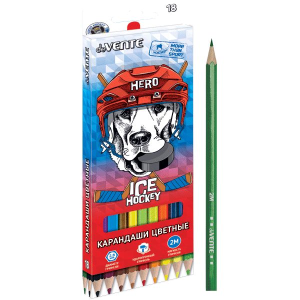 Карандаши цветные "deVENTE. Ice Hockey" 18 цветов, 2М, диаметр грифеля 2,8 мм, шестигранные, в картонной коробке