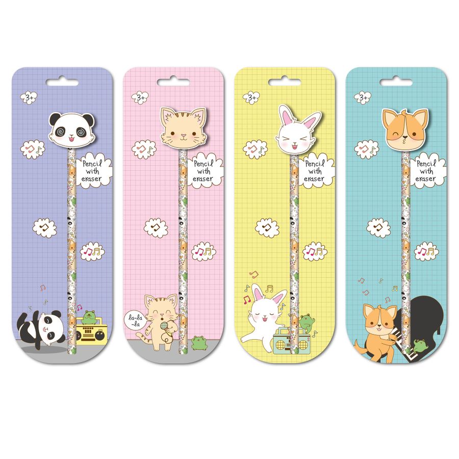 Ч/Г карандаш с ластиком-топпером. Упаковка - 1 шт. на картонной подложке с подвесом.