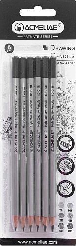 Набор карандашей для черчения твердо-мягких в 6 твердостях: 2H,HB,2B,4B,6B,8B. Высокое качество рисования, эскизов, набросков, скетчей, чертежей любой сложности. Профессиональный проклейка грифеля (корпус с грифелем составляет одно целое) предотвращает его поломки при падении и затачивании. Однородный грифель карандаша не царапает бумагу, оставляет четкие яркие линии, не крошится, затачивается до нужной остроты. Шестигранный корпус легкий, удобно лежит в руке, пальцы не скользят – можно работать без усталости. Корпус из высококачественной древесины ровно и аккуратно затачивается стандартными точилками, не меняет цвет, упругость, не трескается. Длина корпуса 178мм. Диаметр грифеля 2,2мм. Матовая бархатистая лакированная поверхность, серебристый корпус, запаянный верх. Заточенные. Художественные профессиональные карандаши подойдут для студентов вузов, инженеров, художников, архитекторов, чертежников, дизайнеров, художественных студий, школ, колледжей, школьников.