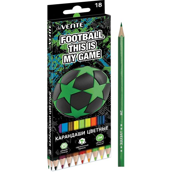Карандаши цветные "deVENTE. Football" 18 цветов, 2М, диаметр грифеля 2,8 мм, шестигранные, в картонной коробке