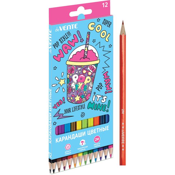Карандаши цветные "deVENTE. POP style" 12 цветов, 2М, диаметр грифеля 2,8 мм, шестигранные, в картонной коробке