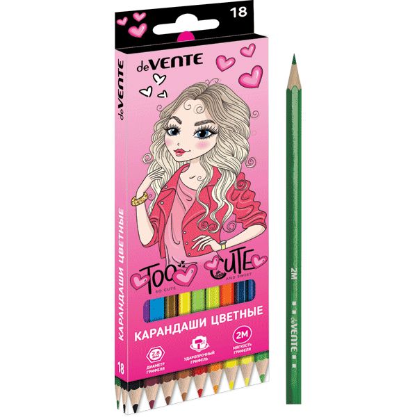Карандаши цветные "deVENTE. Too Cute Girl" 18 цветов, 2М, диаметр грифеля 2,8 мм, шестигранные, в картонной коробке