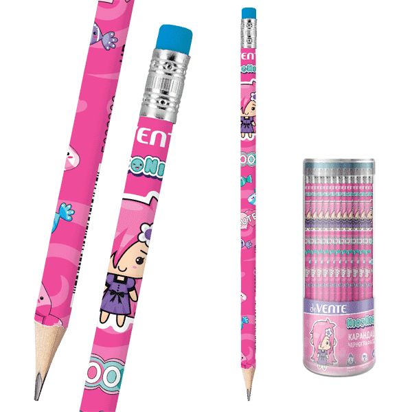 Карандаш чернографитный "deVENTE. NicoNico:-)" HB, диаметр грифеля 2 мм, трёхгранный розовый корпус с запечаткой, с ластиком, заточенный, индивидуальная маркировка, в пластиковой тубе