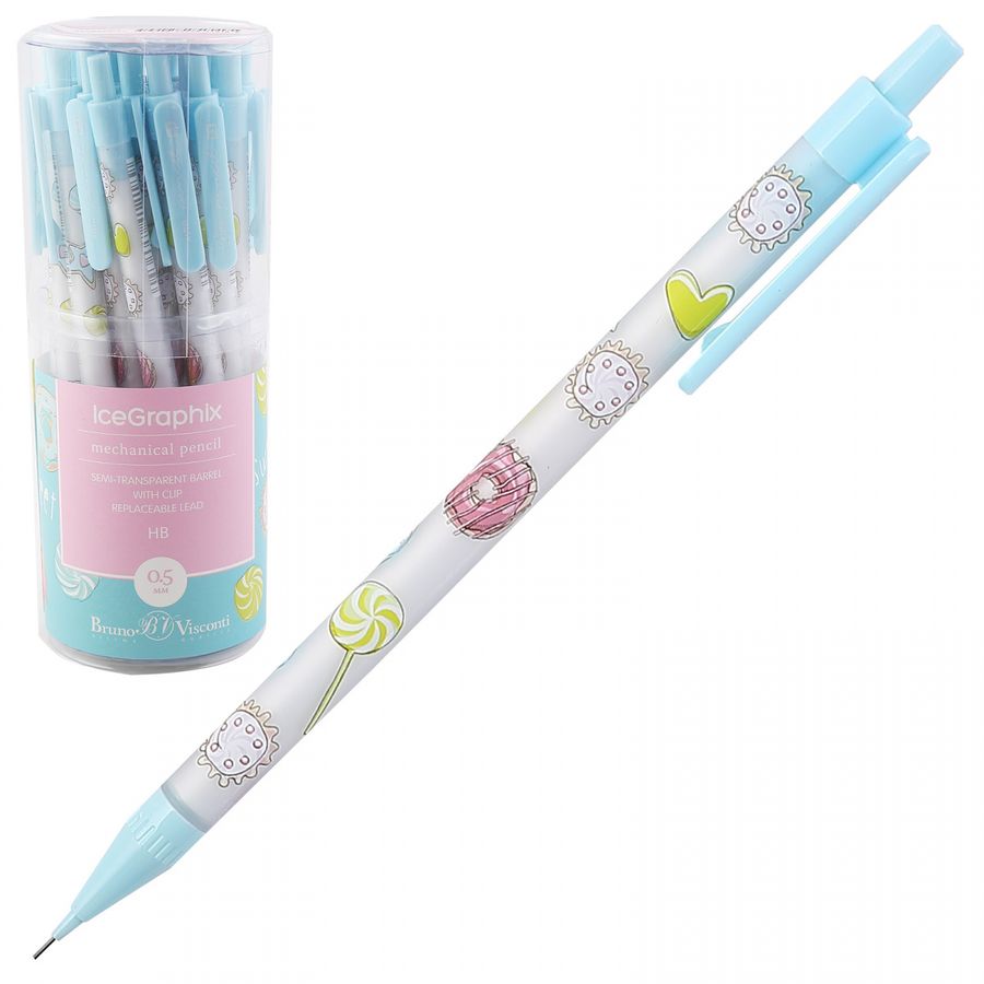 Дизайнеры Bruno Visconti, вдохновленные самой природой, создали коллекцию изящных механических карандашей "IceGraphix" для утонченных натур. Лаконичность форм, безупречность цветовых комбинаций, нежность рисунка - то, что отличает эти карандаши от всех остальных. Растительный мир в отражении водной глади или в тонком ледяном слое водоема - так выглядит дизайн на полупрозрачном корпусе, изготовленном из ударопрочного пластика. Тонкий грифель диаметром 0,5 мм и степенью твердости HB - универсален. Карандаш будет полезен как в чертежно-графических работах, так и для решения офисных и учебных задач.