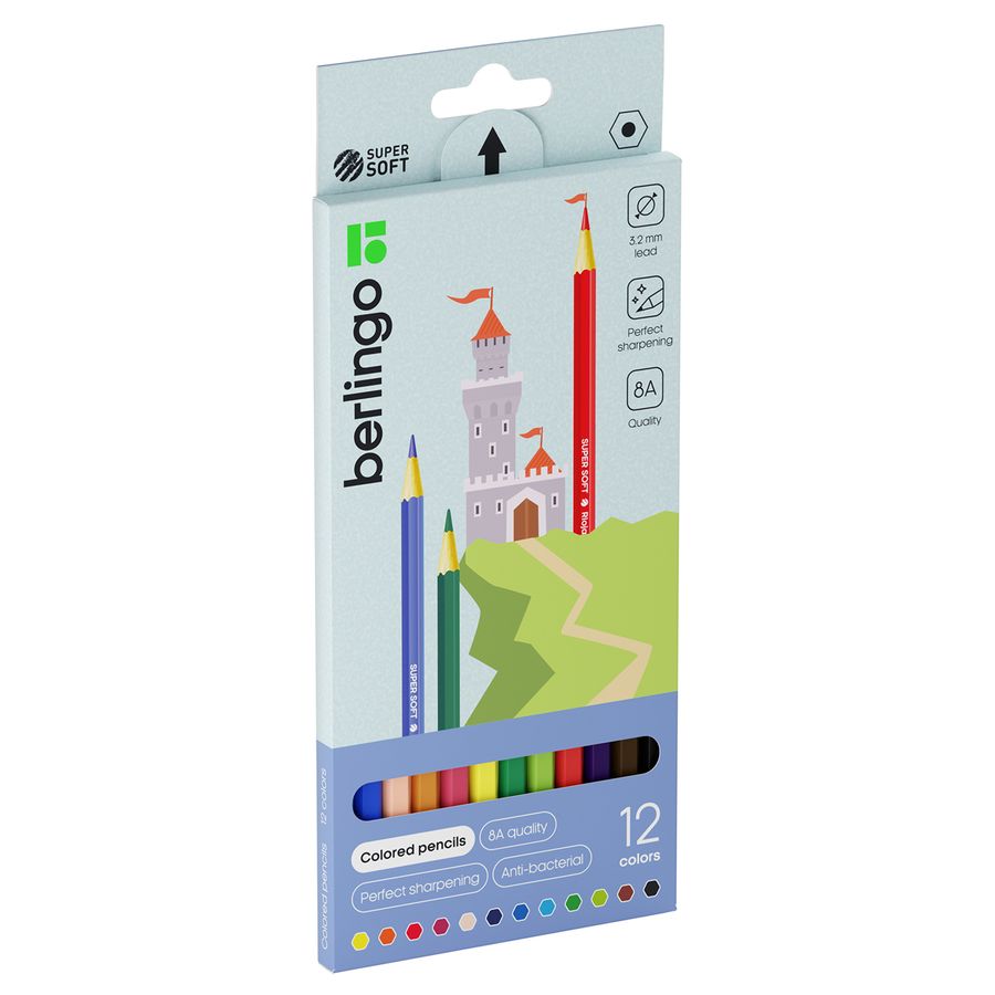 "SuperSoft" - линейка качественно новых цветных карандашей Berlingo. 12 цветов. Эргономичная трехгранная форма. Указание цвета на каждом карандаше на английском языке. Поле для подписи имени владельца на каждом карандаше. Упаковка в плотную матовую картонную коробку со склеенным европодвесом. Грифели высочайшего стандарта качества 8А, являющегося максимальным для нехудожественных цветных карандашей. Мягкость письма, сравнимая с рисованием маслом и пастелью. Яркие насыщенные цвета, обладающие превосходной смешиваемостью. Увеличенная до 3,2 мм толщина грифеля для безупречно комфортного раскрашивания. Уникальная формула и технология производства грифелей, в результате которой достигается одновременно удивительная мягкость письма и прочность, позволяющая грифелю выдерживать даже сильное нажатие под углом 45 градусов. Специальная проклейка, предотвращающая поломку грифеля внутри карандаша при падении. Стойкость к повреждениям. Корпус из древесины высшего качества, прошедшей тщательную обработку. Материал, сохраняющий свою прочность и легко поддающийся ровной заточке без усилий. Уникальная антибактериальная обработка на специализированном оборудовании, гарантирующая безопасное использование продукции детьми.