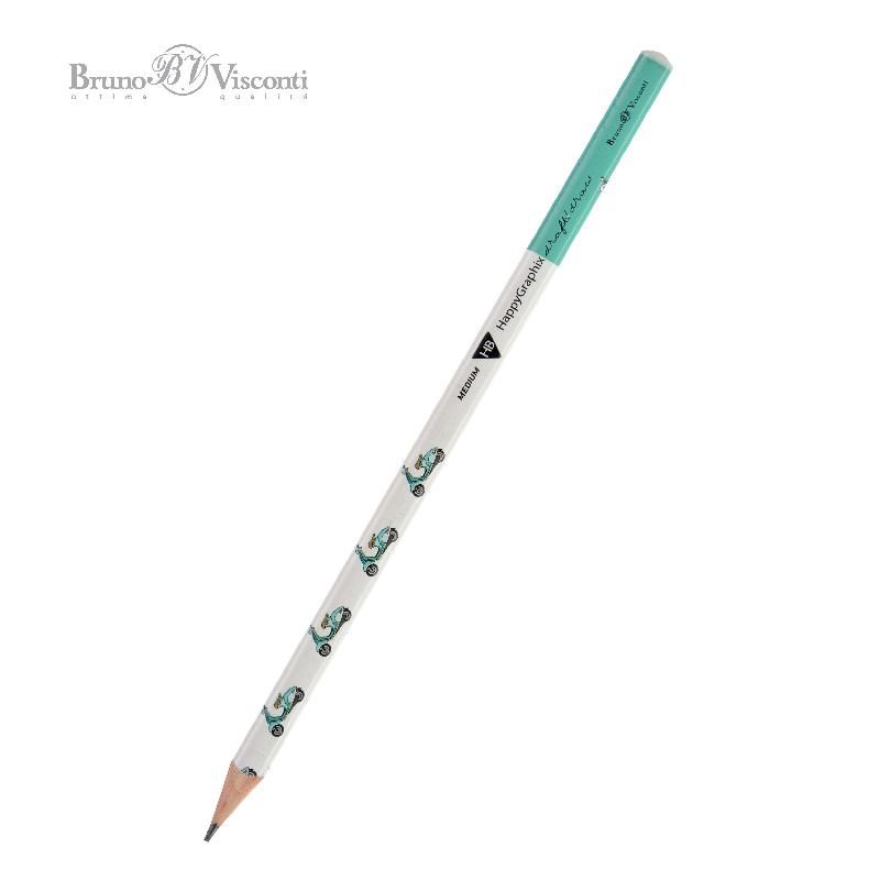 Карандаш BrunoVisconti® чернографитовый, НВ HappyGraphix "МОПЕДЫ" Арт. 21-0030/24 Карандаши «HAPPY GRAPHIX» – для тех, кто ценит эргономичность, качество и выразительность. Корпус карандаша произведен из термообработанной липы. Это идеальная древесина для производства карандашей, если речь идет об оптимальном сочетании цена-качество. Она не рассыхается при хранении, корпус не деформируется, а значит грифель надежно закреплен в нем. Карандаши из липы легко и беспроблемно поддаются заточке и ножом, и точилкой. Карандаш имеет трехгранную форму, что обеспечивает его «правильный захват» тремя пальцами, снижая напряжение кисти. Такой карандаш не будет скатываться с поверхности стола. Грифель идеально отцентрован и проклеен, благодаря чему не ломается при падении карандаша и заточке. Оригинальные и ультрамодные принты на корпусе карандаша привлекают внимание, вызывают положительные эмоции.