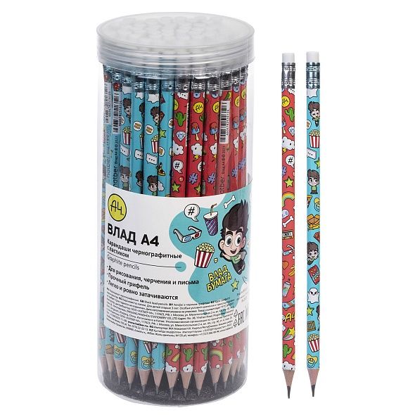 Чернографитный карандаш для черчения, рисования и письма. Круглый корпус. Хорошо и ровно точится. Прочный грифель диаметром 2 мм и твердостью HB. С ластиком. Заводская заточка.