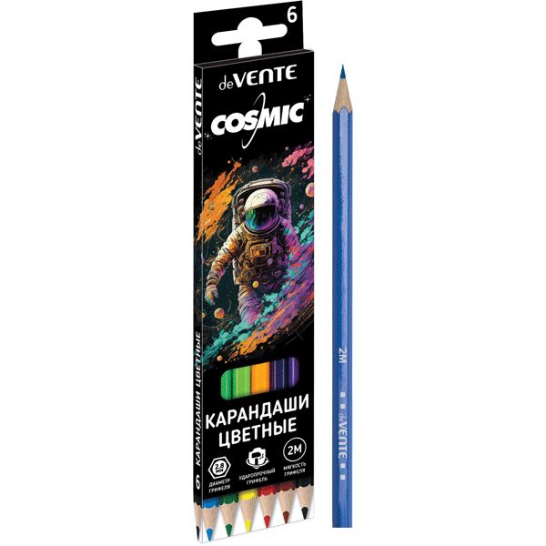 Карандаши цветные "deVENTE. Cosmic" 06 цветов, 2М, диаметр грифеля 2,8 мм, шестигранные, в картонной коробке.