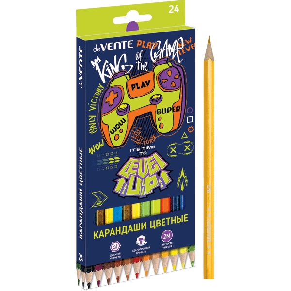 Карандаши цветные "deVENTE. Level Up Game" 24 цвета, 2М, диаметр грифеля 2,8 мм, шестигранные, в картонной коробке