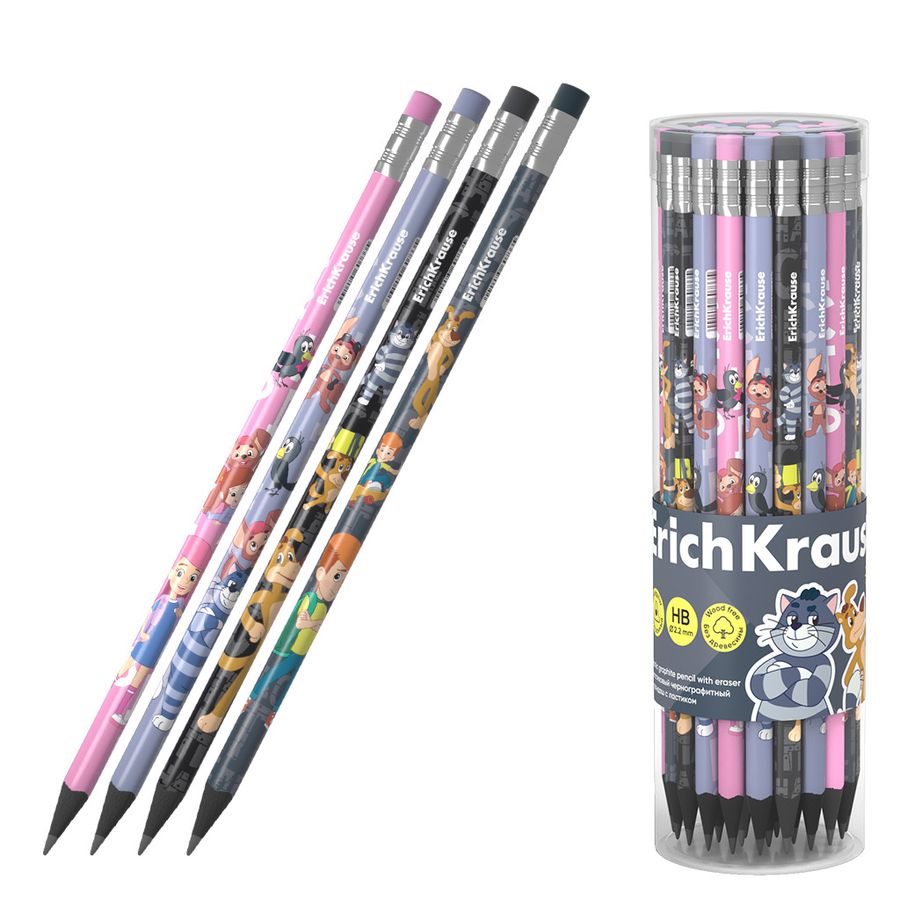 Эргономичный трехгранный чернографитный карандаш из пластика с ударопрочным грифелем, твёрдость HB. Два дизайна корпуса карандаша, с цветными ластиками. Благодаря специальной технологии изготовления карандаша методом экструзии грифель надежно фиксируется к корпусу. Идеальная центровка грифеля гарантирует легкую заточку с экономным расходом карандаша. Грифель диаметром 2.2 мм не царапает бумагу и не крошится при рисовании. Ластик карандаша средней жесткости изготовлен из экологически чистого и гипоаллергенного материала термопластичной резины (TPR). Не содержит ПВХ. Длина 188 мм.