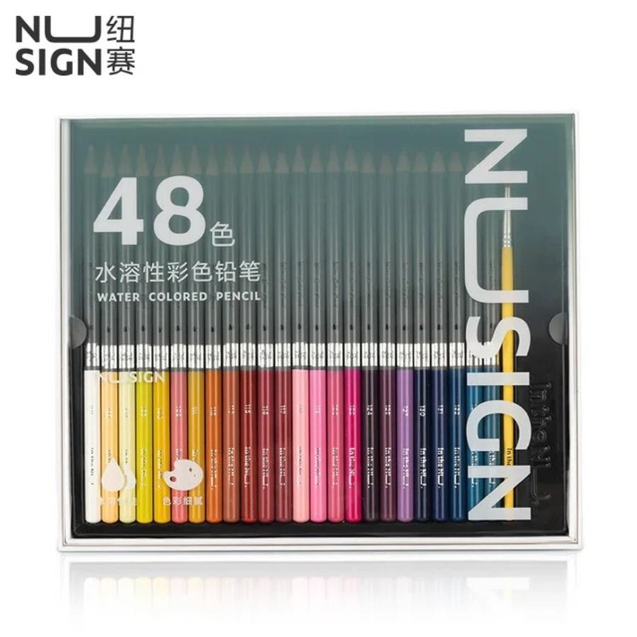Карандаши цветные акварельные Deli, Nusign, 48 цветов, кисть в комплекте, диаметр грифеля 3 мм, коробка с пластиковыми подложками NS731-48