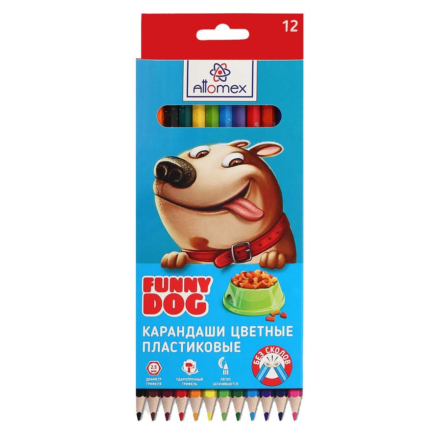 Карандаши цветные пластиковые "Attomex. Funny Dog" 12 цветов, 2М, диаметр грифеля 2,5 мм, шестигранные, в картонной коробке