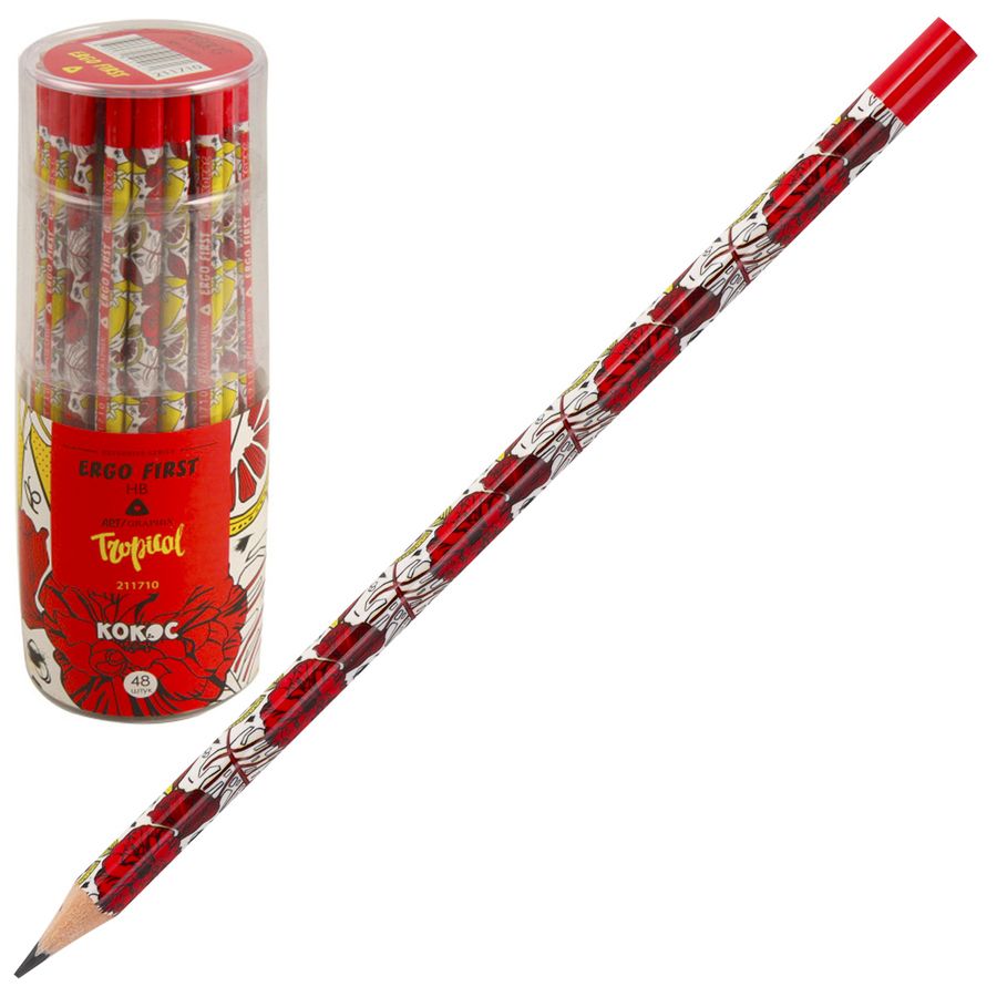 Карандаш, HB, пластик, трехгранный, КОКОС, ERGO First, Tropical, 211710