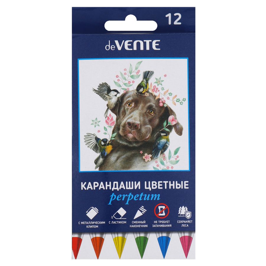 Карандаши цветные "deVENTE. Perpetum" 12 цветов, с наконечником из специального сплава, с ластиком внутри корпуса, цвет корпуса соответствует цвету грифеля, в индивидуальной коробке Заменит до 100 обычных простых карандашей. Инновационный карандаш не требует заточки, хорошо стирается ластиком и не вредит экологии. Грифель карандаша выполнен из вольфрамового сплава, который при соприкосновении с бумагой оставляет след, идентичный обычному грифелю. Карандаш выглядит очень стильно, хорошо лежит в руке, грифель пишет тонко, но четко, без излишнего нажима. Внутри карандаша предусмотрен ластик, который чисто удаляет записи и рисунки, не повреждая бумагу и не оставляя следов. Теперь ластик никогда не потеряется!