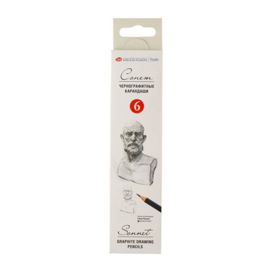 Карандаши "Сонет" идеальны для создания набросков, чертежей и других графических работ любой сложности. Изготовлены из высококачественного прочного графита в шестигранном корпусе из древесины липы диаметром 6,9 мм. Оптимальная толщина стержня позволяет создавать разнообразные эффекты. Карандаши отличаются гладкостью нанесения штриха, легко затачиваются. В набор входят карандаши разной степени твердости: HB, B, 2B, 4B, 6B, 8B. Цветовая градация в дизайне корпуса карандашей обеспечивает комфортную работу. Характеристики: - диаметр корпуса – 6,9 мм, - сечение корпуса – шестигранное, - торец корпуса – срез, - длина карандашей - 175 мм, - заточенные. Упаковка - картонная коробка с европодвесом. Срок годности не ограничен.