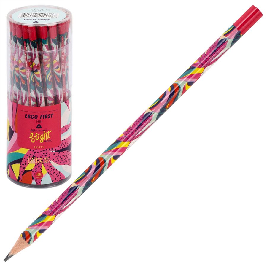 Карандаш чернографитный НВ Ergo First Bright Tropic трехгранный пластик пласт.туба Кокос 211711