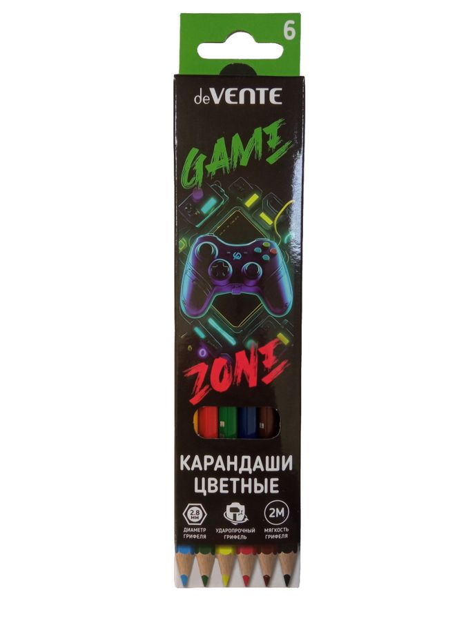 Карандаши цветные "deVENTE. Gamer" 06 цветов, 2М, диаметр грифеля 2,8 мм, шестигранные, в картонной коробке