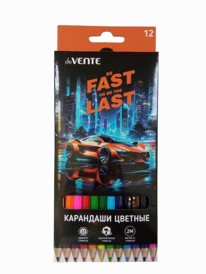 Карандаши цветные "deVENTE. Fast Or Last" 12 цветов, 2М, диаметр грифеля 2,8 мм, шестигранные, в картонной коробке