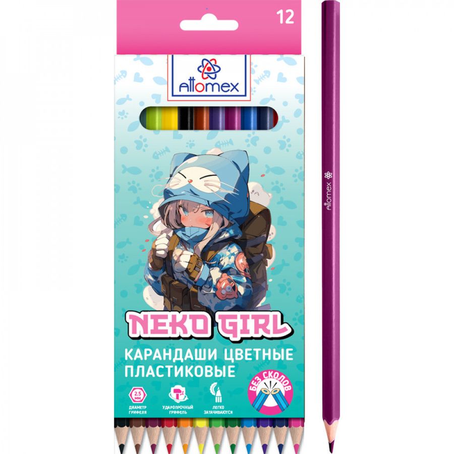 Набор цветных карандашей, "Attomex. Neko Girl", 12 цветов, картонная коробка с европодвесом. Материал - пластик. Карандаши легко затачиваются, имеют гибкий пластиковый шестигранный корпус, яркие естественные цвета и прочный грифель. Карандаш гнется, на сломе нет острых краев. Количество цветов - 12 Количество карандашей - 12 шт Материал корпуса - пластик Толщина корпуса - стандартная Диаметр корпуса - 7 мм Форма корпуса - шестигранная Заточено - да Длина - 175 мм Диаметр грифеля - 2,65 мм Упаковка ед. товара - картонная коробка