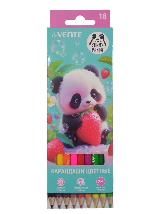 Карандаши цветные "deVENTE. Yummy Panda" 18 цветов, 2М, диаметр грифеля 2,8 мм, шестигранные, в картонной коробке