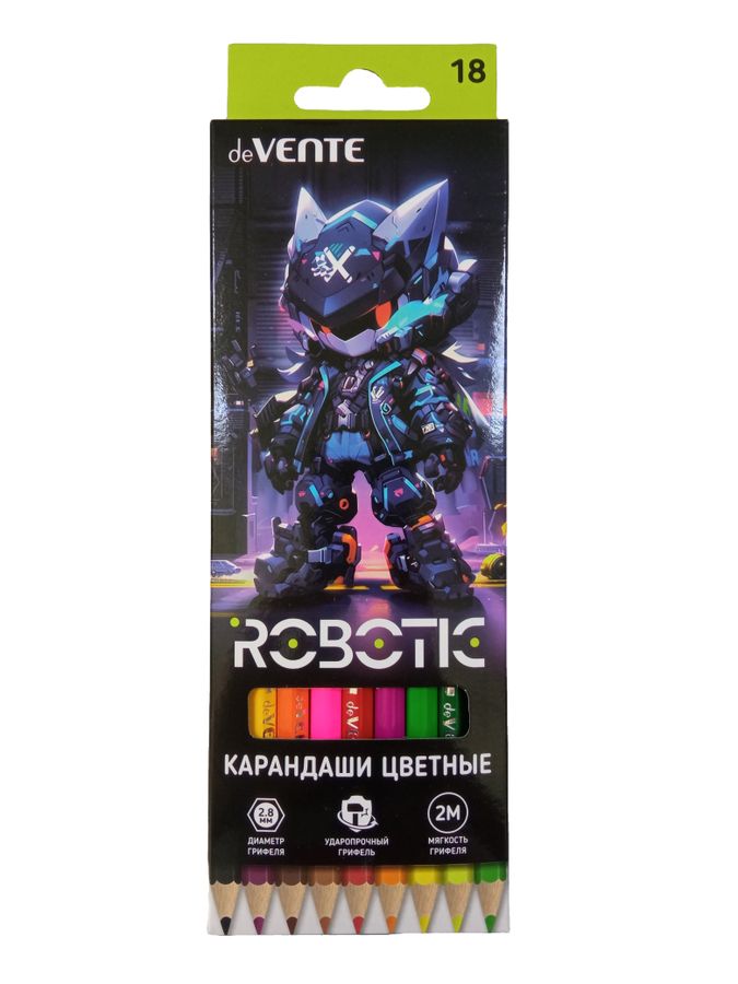 Карандаши цветные "deVENTE. Robotic" 18 цветов, 2М, диаметр грифеля 2,8 мм, шестигранные, в картонной коробке